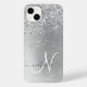 Personnalisez facilement ce design branché de boîtier de téléphone chic avec une jolie parties scintillant brillante en argent sur un arrière - plan métallique brossé en argent.