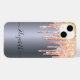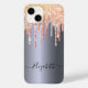 Un coque élégant, féminin et glamour. Un arrière - plan métallique en faux argent foncé. Décoré d'or doré et rose, gouttes de parties scintillant étincelantes roses, look dégoulinant de peinture. Un peu de luxe et de bling quotidien. Personnalisez et ajoutez votre nom. Le nom est écrit avec un script de style moderne écrit à la main. Lettres gris foncé. Pour que les swashes ne suppriment que le nom de l'échantillon, laissez les espaces ou les émoticônes devant et après le nom