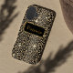 Un étui de téléphone luxueux et élégant avec nom dans cadre doré avec arrière - plan noir. Le design est un motif doré tout autour de lépard avec quelques étincelles de surbrillance. (le produit n'a pas de véritable étincelle ou de parties scintillant). Ajoutez votre nom et créez un coque personnel élégant.