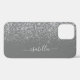 Coque moderne iPhone 12 en parties scintillant gris et mince, élégamment décoré avec votre nom de prénom de script.