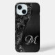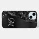 Personnalisez facilement ce boîtier de téléphone à motif de parties scintillant à motif de métal brossé noir et de faux paillettes glamour avec votre propre monogramme personnalisé.