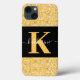 Parties scintillant d'or moderne Monogramme iPhone 13 Nom du Coque coque iphone Monogramme d'or noir moderne Feminine Script Nom Téléphone Case