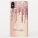 La parties scintillant dorée rose rose rose moderne éclaire le nom personnalisé et le coque iphone monogrammé. Ce design présente des gouttes brillantes de parties scintillant rose rose rose rose rose éclatantes sur le métal rose arrière - plan d'apparence avec monogramme initial et de premier nom modèle texte. Un cadeau féminin parfait. Si vous avez besoin d'aide ou d'objets correspondants, veuillez me contacter.