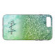 Ce boîtier mobile en marbre vert ceint et parties scintillant verte peut être personnalisé avec votre nom et monogramme.