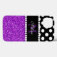 Parties scintillant violet de fille (EFFET IMPRIMÉ) avec Pois blancs sur un arrière - plan noir monogrammé avec votre nom et votre initiale. Elke Clarke © pour Monogram Gallery à Zazzle. Une bande noire a une bordure d'une rangée imprimée de diamants blancs. TENDANCE, CHIC, DESIGN COOL POUR ELLE, LA TENDSETTER, LA FASHIONISTA. Autres couleurs disponibles dans notre boutique à l'adresse www.zazzle.com/monogramgallery