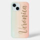 Cette étagère téléphonique élégante présente d'élégantes rayures abstraites d'aquarelle dans des tons pastel apaisants de verre de mer vert et de corail pêche. Les teintes douces et rêveuses créent une atmosphère apaisante et artistique, parfaite pour un usage quotidien. Ajoutez une touche personnelle en la customisant avec votre nom dans une police de caractères manuscrite charmante, ce coque est le vôtre. Idéal pour ceux qui aiment les designs subtils et artistiques avec une touche de personnalisation !