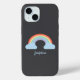 Un étui de téléphone noir avec un arc-en-ciel pastel mignon, ses deux nuages bleus et un texte personnalisable : parfait pour un cadeau romantique à une petite amie.