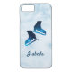 Un étui de téléphone personnalisé en bleu foncé pour les patineurs figuratifs (filles et garçons) - pour transporter votre passion partout.Couleurs: Les étoiles bleues foncées sur le arrière - plan de glace bleu clair.Design: Paire de patins à silhouettes + personnalisation avec le nom du patineur de glace.