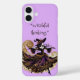 Coque iphone avec sorcière méchante, teintes dorées violettes dans "motif Art Déco" pour vous avec des vibrations éffrayantes. Parfait comme cadeau pour Halloween, Noël, Anniversaire, Thanksgiving et plus. Le texte "Witchful Thinking" est personnalisable. Ajoutez votre propre citation ou mots avec les outils fournis par Zazzle. Conçu par © Designer Artist, www.zazzle.com/store/electronics_gallery