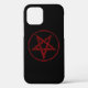 Pentagramme rouge, inversé, texturé en cercle, sur arrière - plan noir. Symbole occulte 666