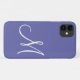 Un script blanc simple et chic initial sur un étui téléphonique périwinkle. Style moderne et minimaliste.