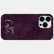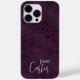 Magenta élégant ou coque iphone léopard noir rose foncé avec typographie personnalisable en caractères de script tendance et personnalisée avec votre nom.