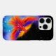 Phoenix flammé volant à travers l'espace sur un nuage de nébuleuse bleu et violet. La constellation de phoenix est constituée par le groupe étincelant d'étoiles qui couronne la tête de l'oiseau mythique. ♡ Idyllfire