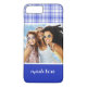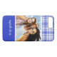 Coques Case-Mate iPhone Photo personnalisée Nom bleu blanc Plaid 2