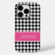 Un coque iphone coutume motif preppy rose et noir houndstooth. Moderne et mignon. Parfait pour une petite fille ou un adolescent. Personnalisez facilement avec votre nom !