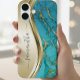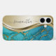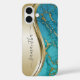 Coques Case-Mate iPhone Pierre de marbre doré turquoise avec nom manuscrit
