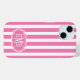 Customize this pink and white striped iPhone 15 case with your initials in a modern CAP font in white on pink. It's so modern and trendy yet preppy and classic!