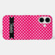 Pink and White Polka dots iPhone 16 Case you can customize or personalize it by adding a text or your name.