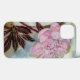© Lisa Snow Lady / Wild Apple. An image of a pink peony blossom and flower bud. Green leaves, stems, and a bluish yellow background complete the image.