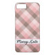 Plaid rose et Brown avec étiquette de nom personnalisable