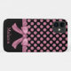 Motif mignon pois rose et noir avec arc et ruban satiné. Ce chic pois rose point iPhone 6 coque a un nom personnalisable pour vous à la facilité.
