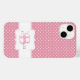 Boîtier téléphonique mignon et girly avec motif à pois rose, personnalisé avec prénom et initiale.
