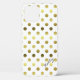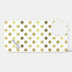 Protégez votre iPhone, dans le style, avec cet élégant coque blanc et or. Graphiques de pois de couleur or, sur un arrière - plan blanc couvre ce coque amusant mais glamour. Personnalisez le texte, en bas à gauche, pour vous-même ou comme une excellente idée cadeau.