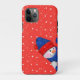 Mignonne bonhomme de neige en flocons de neige sur des points à épingles blanches et arrière - plan rouge.