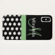 Coques Case-Mate iPhone Pois de script de monogramme noir blanc vert