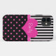 Cute, douce et cool forme de coeur rose, pois rose, noir et blanc bandes graphiques design. Pour elle - fille, fille, amie, mère, tante, grand-mère, soeur, femme, femme, femme, femme. Choisissez un autre style de téléphone, cliquez sur la PERSONNALISER jaune et choisissez dans le menu déroulant pour sélectionner dans iPhone 3S, 4S, 5S; Samsung Galaxy S2, S3, Nexus; iPod Touch; HTV Vivid; Motorola Razr; Blackberry Bold 9700/9780.