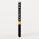 Coque iphone chic, avec un motif à pois noir et blanc, en haut et noir solide en bas, du coque. Les graphiques d'un ruban jaune traversent le centre et sont décorés d'une fleur Edelweiss blanche et jaune. Personnalisez le texte personnalisé en fonction de vos besoins.