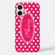 Coque graphique à motifs pointillés pour les filles modernes rouge vif poka rose. Parfait pour personnaliser votre iphone ou comme cadeau spécial de Noël ou d'anniversaire pour une femme ou une fille ado. Personnalisez avec votre choix de nom et d'initiale. Voici l'exemple : Sherry H. Design par Sarah Trett. www.sarahtrett.com pour www.mylittleeden.com sur zazzle.
