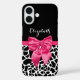 Un design poster de animal girly avec un motif girafe noir et blanc tendance et un joli arc rose chaud. Ce design poster de animal chic peut être personnalisé en ajoutant le nom de votre fille ado.