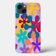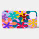 Ce boîtier téléphonique a un design rétro des années 1970 de fleurs qui se chevauchent en rouge, bleu, violet, jaune, orange et rouge.