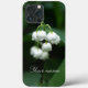 Photo de Zolotareva.Puissent les lis blancs de la vallée pousser pour moi dans les bois. Le lis de la vallée pousse dans les feuillus et les pins, mais aussi dans les forêts mixtes, sur les bords et les glaces. Petites fleurs blanches d'un lis de la vallée. Fleurs Lys de la vallée feuilles vert argenté. Vous pouvez ajouter un nom ou du texte personnalisé. Personnalisez ce modèle.