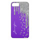 Élégant boîtier téléphonique en violet avec des graphiques d'une parties scintillant d'argent à l'allure de peinture et faux diamants coulant, du haut du coque. Personnalisez le texte pour vous-même ou comme une idée cadeau chic pour elle.