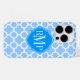 © 2012 Socialite Designs. Notre design élégant en quatrefoil bleu clair et blanc coque a une bannière pour votre monogramme, initiales ou nom.