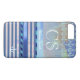 Coques Case-Mate iPhone rayures bleues, nom/initiales & ancres
