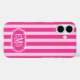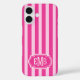 Personnalisez cette coque iPhone 16 rayée rose chaud et rose avec vos initiales dans une police CAP moderne en blanc sur fond rose chaud. C'est tellement moderne et tendance tout en étant chic et classique !