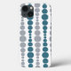 Ce boîtier de téléphone a un design moderne du milieu du siècle de rectangles turquoises et gris arrondi en taille croissante et décroissante fonctionnant verticalement sur un champ de blanc.