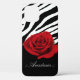Coque iphone florale élégante et design, conçue avec une belle rose rouge sur un motif zèbre rayé, personnalisée avec votre nom ou texte personnalisé. Ce coque est parfait pour tous ceux qui veulent un élégant coque smartphone et aime les roses rouges et les motifs d'impression zèbre.