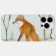 Une minuscule aquarelle représentant un renard rouge lors d'une chasse dans le paysage enneigé de l'hiver orne cette étagère téléphonique !