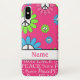 Ce cas de téléphone de contact d'iPod de cool comporte une rétro et à la mode conception rose et bleue de fleur de signe de paix de vert de chaux et de blanc et le nom de votre choix.