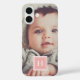 Ajoutez une photo préférée à ce boîtier de téléphone simple et chic, superposé avec votre monogramme initial unique en lettres blanches sur un carré rose vif.