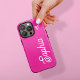 Ce boîtier de téléphone féminin et coloré est doté d'un arrière - plan rose vif, avec votre nom dans un script blanc tendance et rétro, et d'un coeur dessiné à la main.