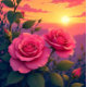 Un étui téléphonique dynamique avec des roses roses roses sur un décor de soleil époustouflant.