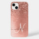 Personnalisez facilement ce design branché de boîtier de téléphone chic avec une jolie parties scintillant brillante en or rose sur un arrière - plan métallique brossé en or rose.