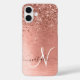 Personnalisez facilement ce design branché de boîtier de téléphone chic avec une jolie parties scintillant brillante en or rose sur un arrière - plan métallique brossé en or rose.