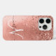 Personnalisez facilement ce design branché de boîtier de téléphone chic avec une jolie parties scintillant brillante en or rose sur un arrière - plan métallique brossé en or rose.