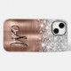 Joli or Rose brossé métal argent faux parties scintillant monogramme I-Phone boîtier de luxe de parties scintillant moderne Chic girly shimmer rose or brossé métal argent parties scintillant. Belle couverture moderne et cool pour les filles qui aiment les designs brillants et classe. Montrez votre style personnel, regardez à la mode, branché et vous sentez élégant avec un design unique sur un accessoire mobile ou customisez-le sur un autre produit de votre choix. Ajoutez votre nom avec une typographie de calligraphie cool et moderne. Il fait l'idée cadeau parfait pour un doux 16 anniversaire, mariage, douche nuptiale, anniversaires, baby showers ou fêtes de bachelorette, jour des valentines ou en cadeau en général.